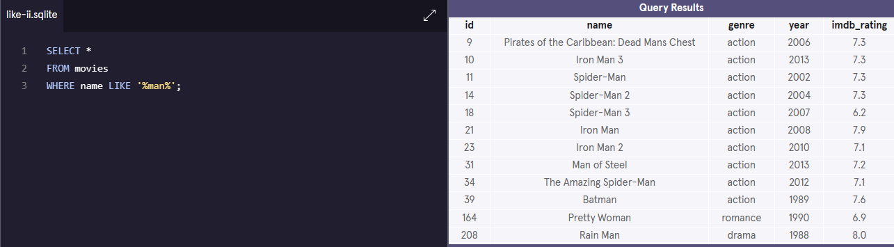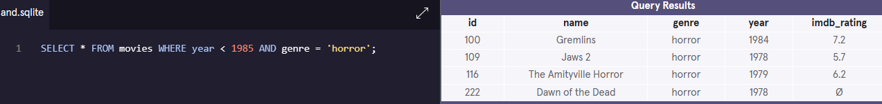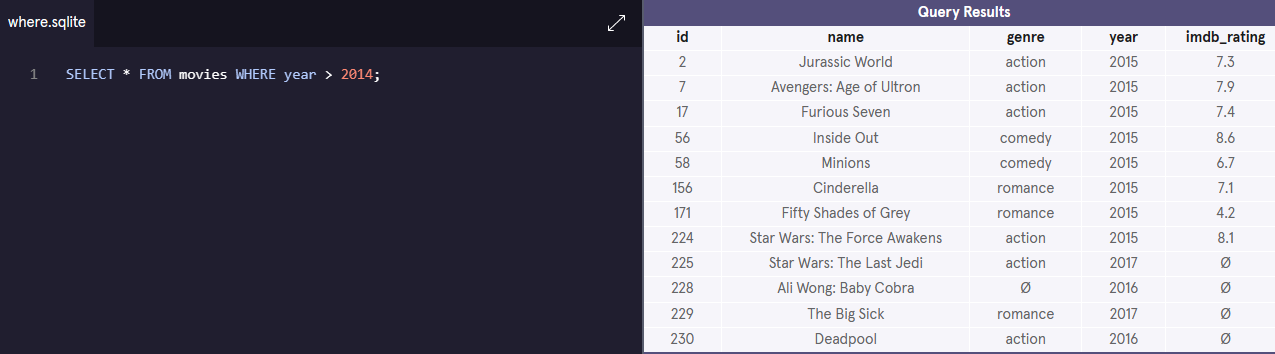 - WHERE is a popular command that lets you filter the results of the query based on conditions that you specify.