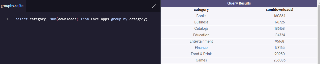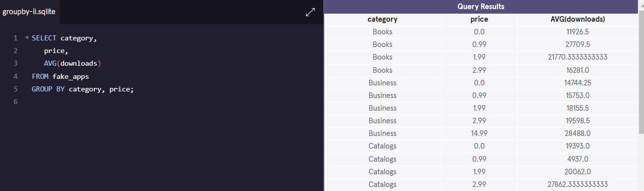 avg함수 없이 그냥 downloads라고만 하면 각 그룹의 첫번 째 값으로 반환됨
