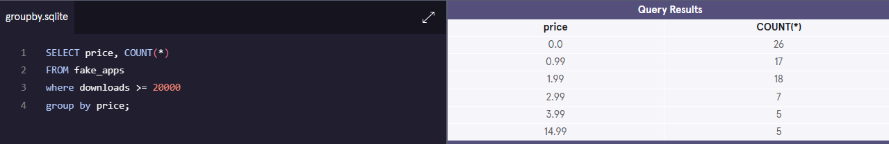 We can’t use WHERE here because we don’t want to filter the rows; we want to filter groups