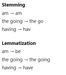 - 단어들이 형태가 달라도, 뿌리 단어를 찾아가서 단어의 개수를 줄일 수 있는지 판단