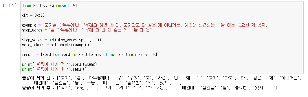 불용어를 따로 정의해서 공백을 기준으로 리스트 생성
