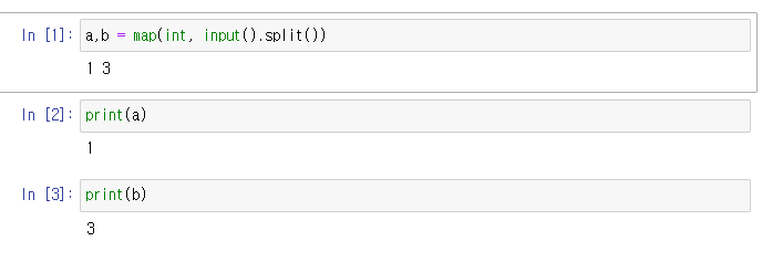 input().split() -> split() 함수로 공백을 기준으로 잘라서 리스트가 반환된다.