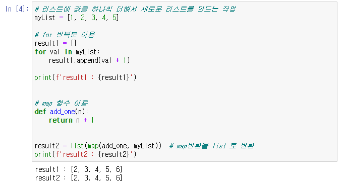 반환 값은 map 객체 -> list나 튜플로 형 변환 시켜야함!