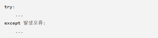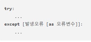 try 블록을 실행하다가 오류가 발생하면 except 블록을 실행한다