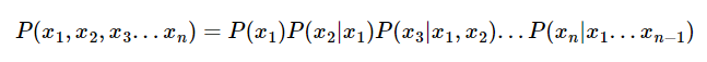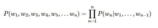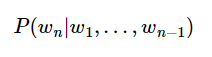 조건부확률을 통해 n-1개의 단어가 나열된 상태에서 n번째 단어의 확률 계