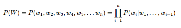 전체 단어 시퀀스 W의 확률은 모든 단어가 예측되고 나서야 알 수 있다
