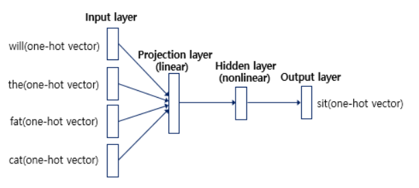 t : NNLM이 예측하고자 하는 단어가 문장에서 t번째 단어