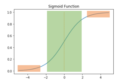 - 시그모이드 함수는 주황색 구간에서 미분값이 0에 가까운 아주 작은 값