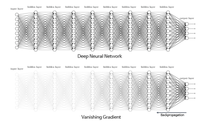 - 역전파 과정에서 입력층으로 갈 수록 기울기가 점차적으로 작아지는 현상