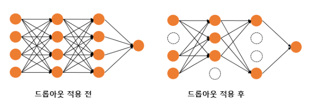 - 학습 과정에서 신경망의 일부를 사용하지 않는 방법