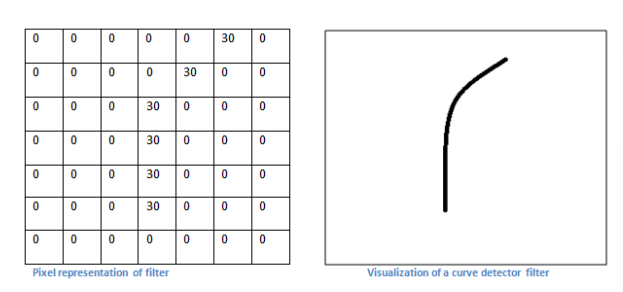 - 아래는 곡선을 검출하는 필터 -> 저 필터를 적용해서 높은 값이 나온다면? 곡선이 있다는 것!(특징 검출)