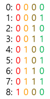 즉, n번째로 작은 bit는 2^(n-1)이 증가할 때 마다 바뀌는 것을 알 수 있다