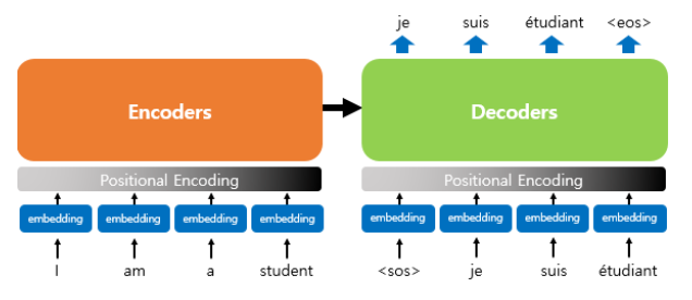 - 아래 그림처럼, 트랜스포머의 입력에 포지셔널 인코딩 값이 더해져서 입력 값으로 사용됨