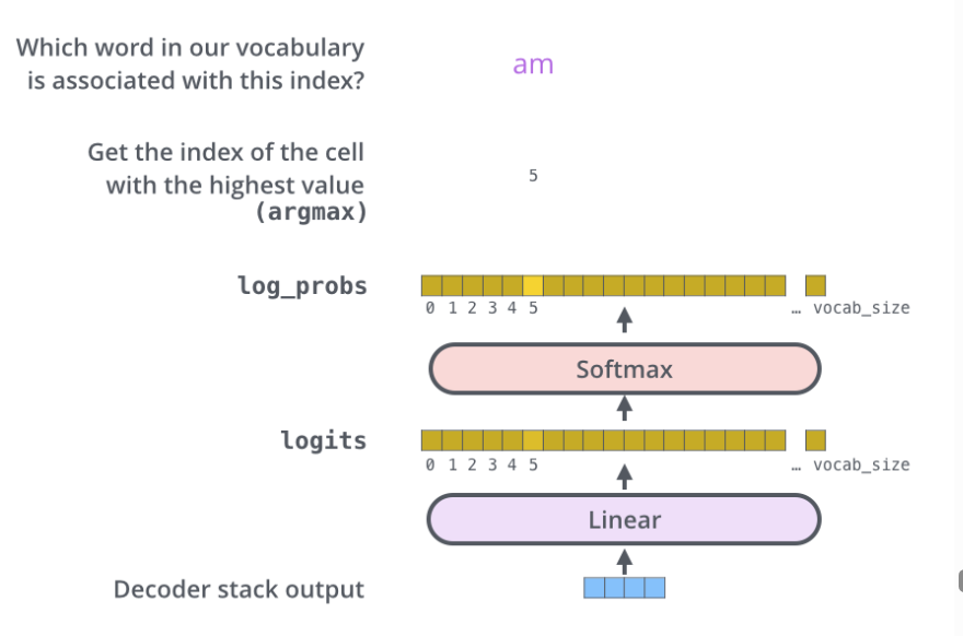 즉, logits 벡터의 각 셀은 그에 대응하는 각 단어에 대한 점수가 됨!