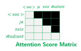 이러한 그림처럼 어텐션을 수행, 즉 단어들을 참고할 때 자기 자신보다 미래에 있는 단어들은 참고하지 못하게 마스킹을 함