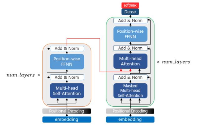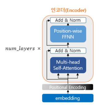- num_layers : 트랜스포머의 하이퍼 파리미터. 지정한 개수의 인코더층을 쌓음.