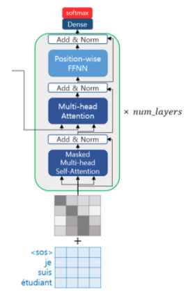 이후에는 인코더와 똑같이 포지션-와이즈 FFNN을 거쳐서 디코더층의 최종 출력값이 나옴