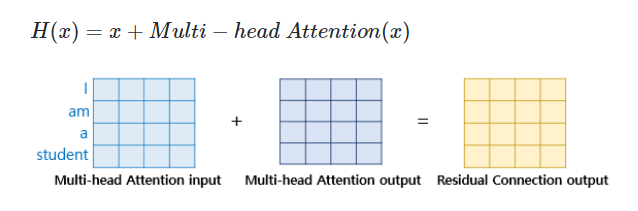 첫번째 서브층인 멀티헤드 어텐션 층과 잔차연결을 함꼐 이해해보면