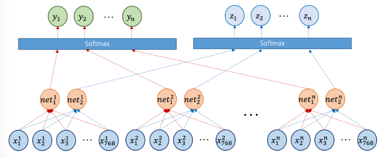 그리고 이 값들에 대해서 소프트맥스 함수를 적용하면 y1,,,yn 과 z1,,,zn이 도출된다